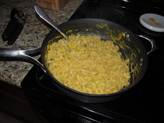 Cooking the Mac and Cheese...I used the good ol' Kraft Home-style again. We had the four-cheese this time and I think it was better!