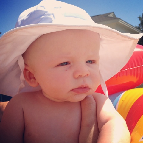 Likes: He loves being outside, bath time, eating, when we blow on his belly and kiss his neck, being thrown up in the air, strolling in his BOB, sitting up on his own and trying to pet Molly and Baxter.